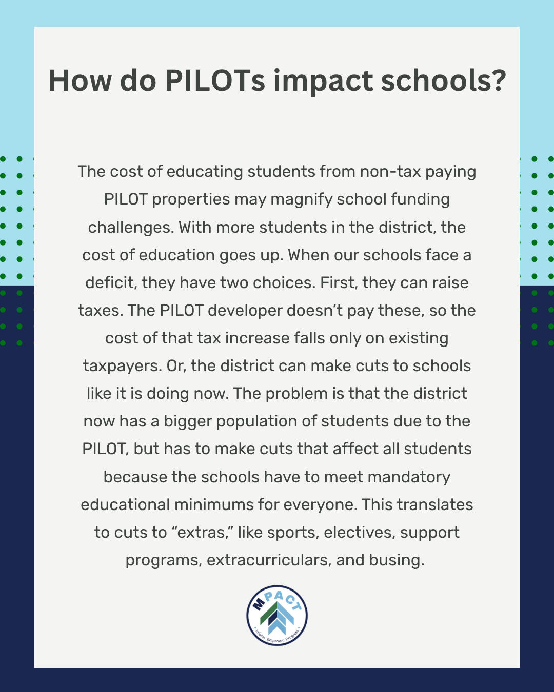 This Explainer addresses the Montclair Township’s decision to incentivize property development through tax exemptions, specifically through the use of Payments in lieu of Taxes (PILOTs). When PILOTs are used, Montclair Public Schools (MPS) and taxpayers are not getting all the financial support or tax relief they could. Revenue from PILOTs in Montclair do not currently support the schools or provide relief to school taxes. With tens of millions of dollars in property tax exemptions granted for PILOT projects over the last ten years, none of the projects have contributed to school funding or relieved school taxes.