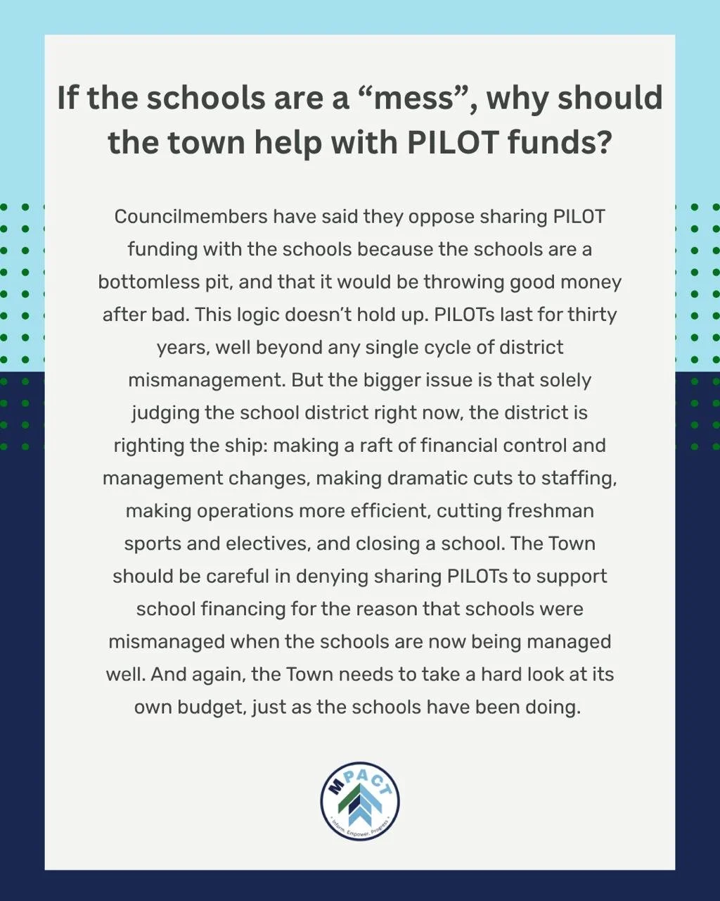 The Explainer clarifies the series of choices the Town Council makes or omits each time a new development project comes up. It explains the impact these choices have on school budget and school taxes: to essentially impose a hidden cost on our schools and taxpayers. It comes at a crucial inflection point for both the District and Township, with legislation before the Montclair Town Council regarding granting a PILOT to the Lackawanna Development project, and a separate proposal that could require PILOT revenue to be shared with schools.